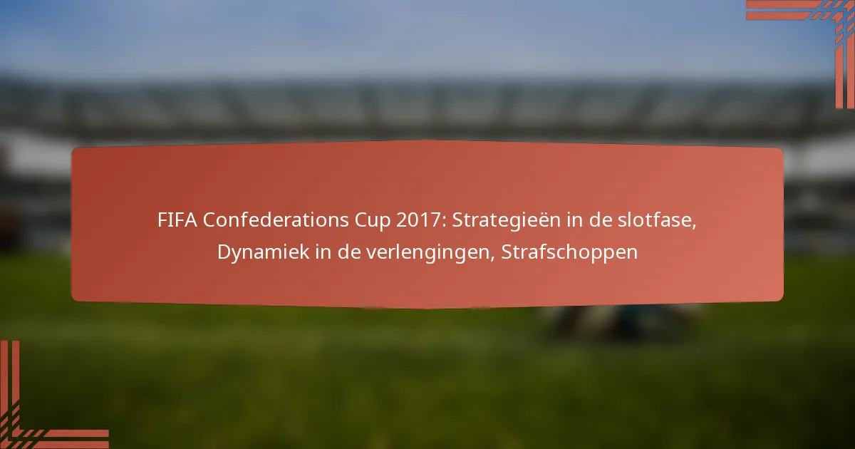 De FIFA Confederations Cup 2017 toonde het belang aan van strategieën in de slotfase, waarbij teams zich richtten op het behouden van controle en het maken van tactische aanpassingen om hun posities veilig te stellen. Naarmate de wedstrijden in de verlenging gingen, werden fysieke conditie en mentale veerkracht cruciaal voor spelers om op hun best te presteren. In het geval van een gelijkspel dienden strafschoppen als een beslissende methode om de winnaar te bepalen, wat de druk en vaardigheid benadrukte die betrokken zijn bij situaties met hoge inzet.